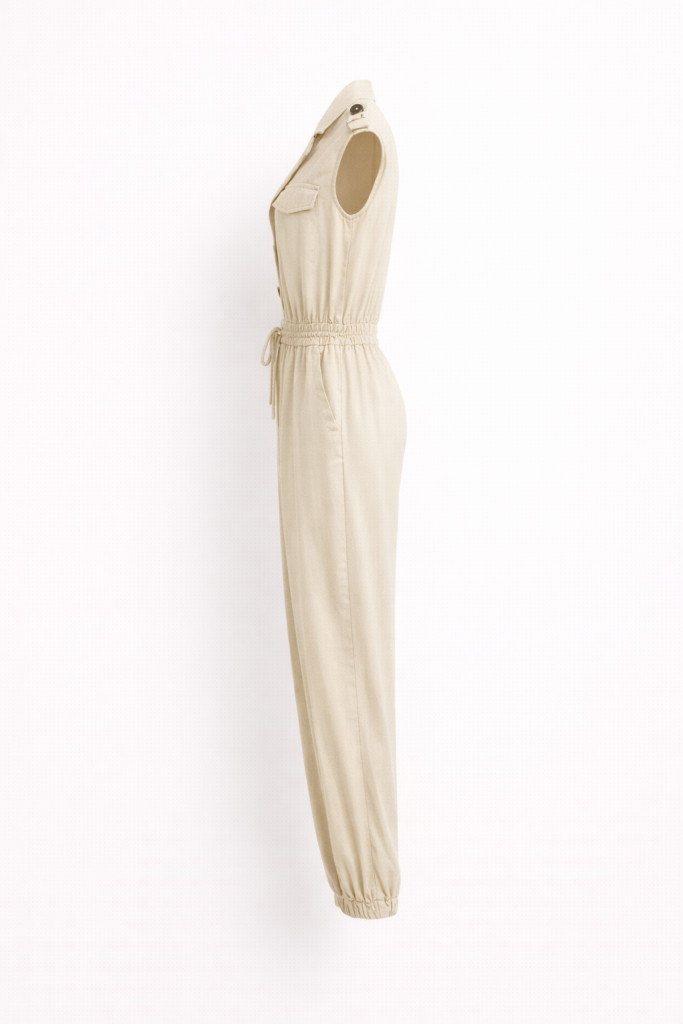Ez az overál a letisztult, mégis karakteres darabok tökéletes példája. A modern szabás és a finoman strukturált felsőrész elegáns megjelenést ad, miközben a gumis derékrész szépen kiemeli az alakot és extra kényelmet biztosít a mindennapok során.