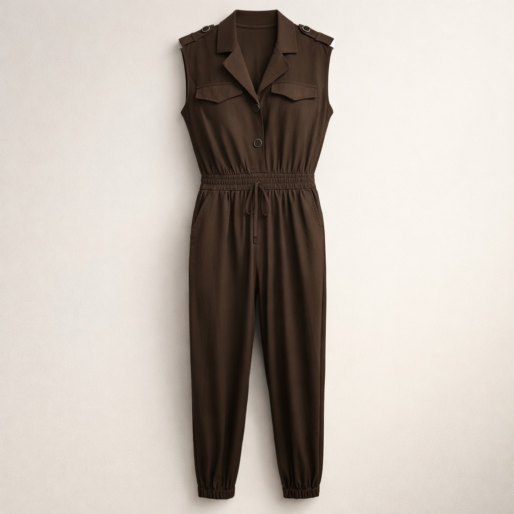 Ez az overál a letisztult, mégis karakteres darabok tökéletes példája. A modern szabás és a finoman strukturált felsőrész elegáns megjelenést ad, miközben a gumis derékrész szépen kiemeli az alakot és extra kényelmet biztosít a mindennapok során.
