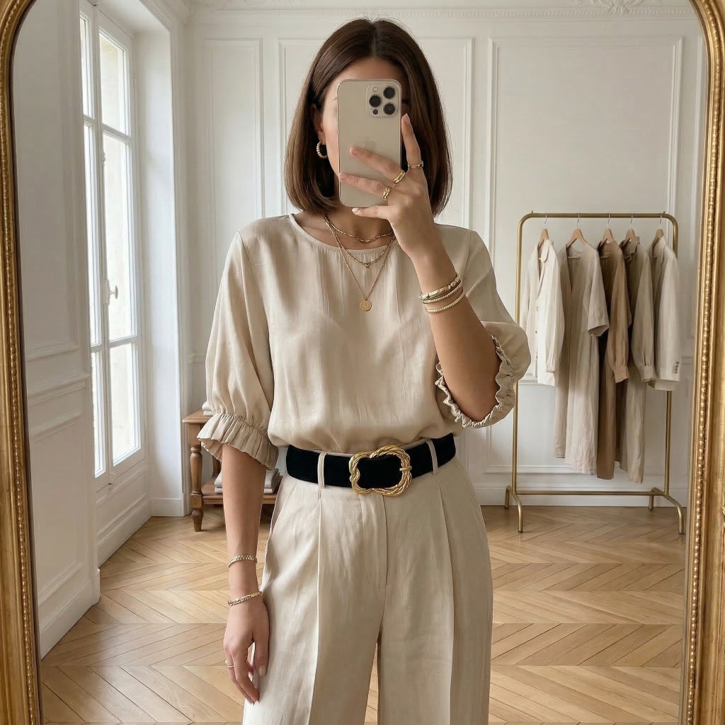 A gumírozott alsó résznek köszönhetően könnyedén formázza az alakot, így derékban enyhén blúzos hatást ad, ami különösen előnyös viselet. A fazon méret nélküli, S–M–L méretre ideális, így több testalkatra is jól illeszkedik.