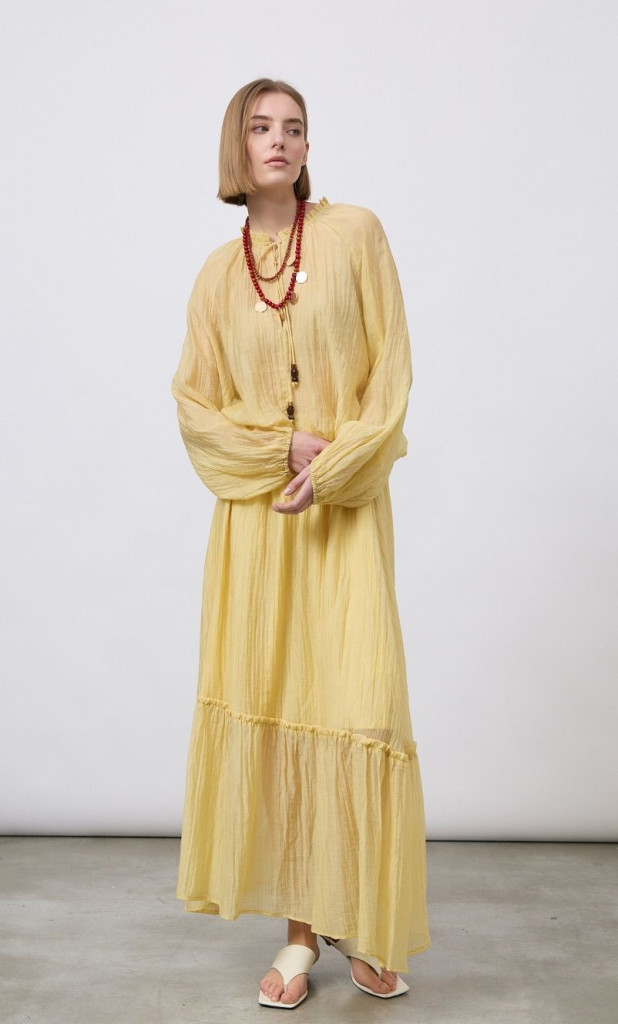 Ez a midi szoknya igazi nőies alapdarab, amely minden lépésnél gyönyörűen követi a mozgást. A finoman fodros kialakítás romantikus hatást ad, miközben a letisztult szabás miatt könnyen kombinálható.