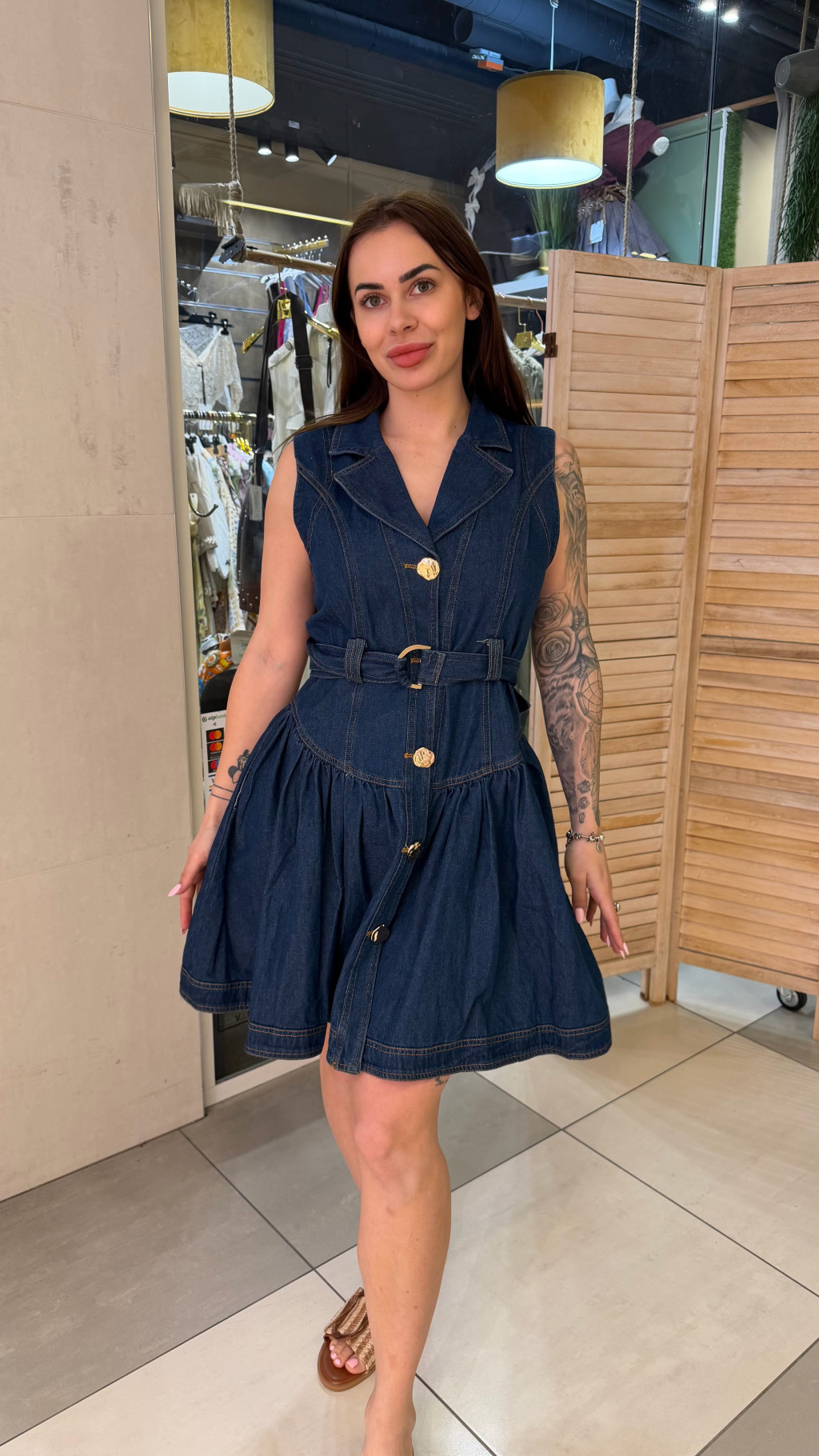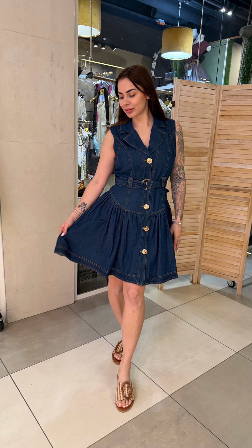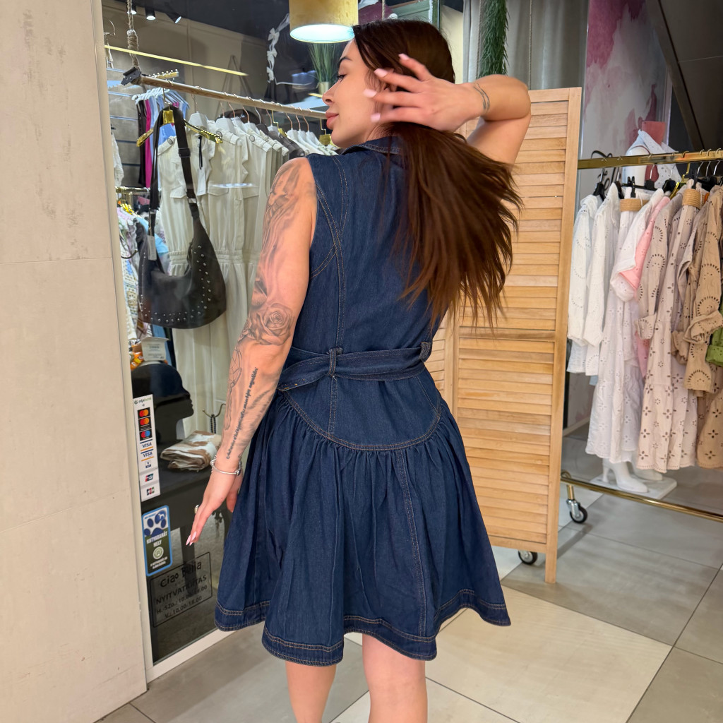 Ujjatlan farmer mini ruha, ami egyben hozza a nőies és vagány vonalat. Elöl végig gombos kialakítású, így nem csak praktikus, de karaktert is ad a darabnak.
